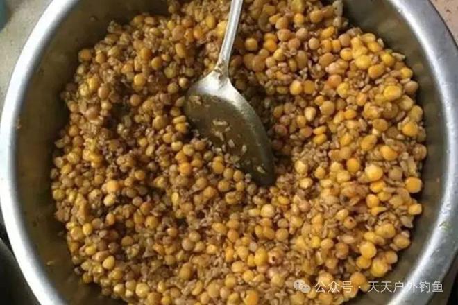 玉米粒经常用于钓大鱼时候窝料和饵料,特点是价格比较低,缺点是通常制作步骤比较多,要么泡要么发酵,反正不能直接使用。可以准备5斤老玉米,一包甜酒曲,一点高度白酒。先把老玉米泡洗净泡软,再准备一点麸皮,麸皮的占比在20%左右就行,随便加点水混合一下,然后上锅蒸熟。冷却到室温备用。准备一个坛子清洗干净,坛子里最好用高度白酒擦拭一遍,然后把主料全部放进去,加入一包甜酒曲搅拌均匀密封发酵,一周之后就可以使用。做饵还是打窝均可,酒香浓郁非常对大鱼的胃口。还可以准备少量老玉米,泡软之后捞出来放到盆里,盖好毛巾每天淋水,等到玉米发芽就可以进行下一步了。